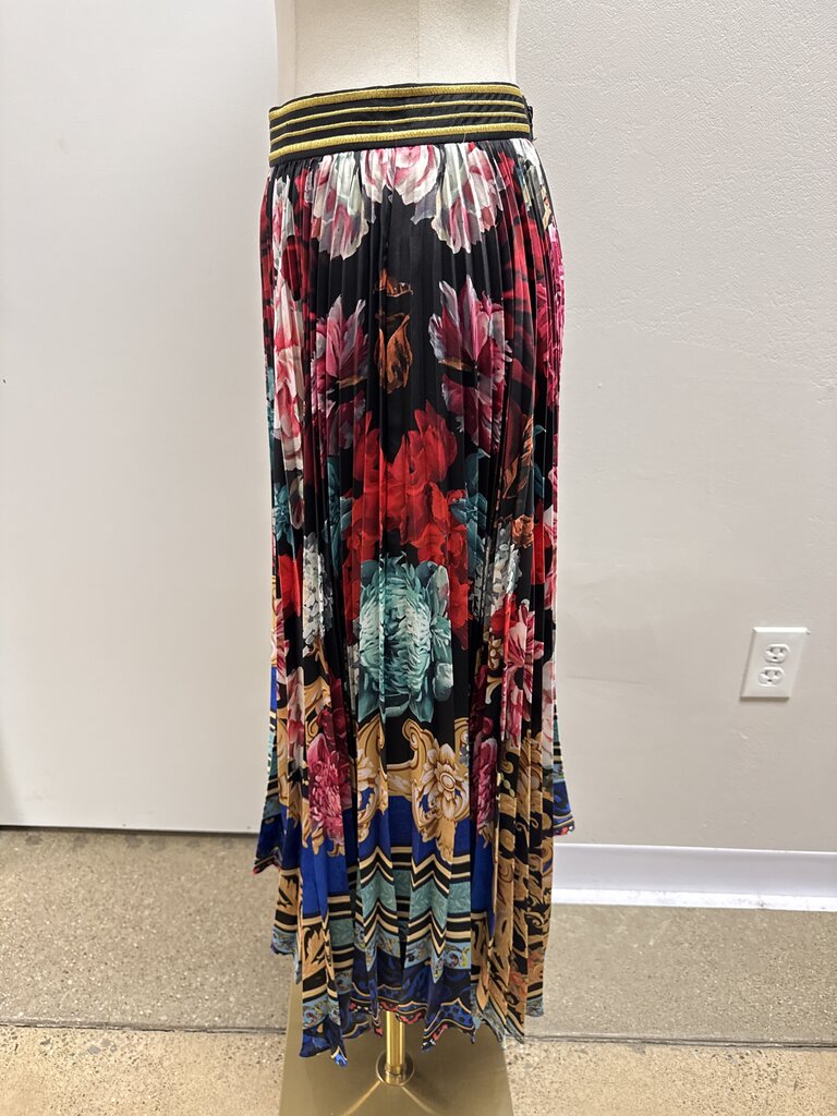 Alice + Olivia Black Floral Pleated Midi Skirt