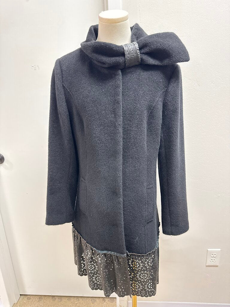Badgley Mischa Black Laser Cut Leather Hem Overcoat