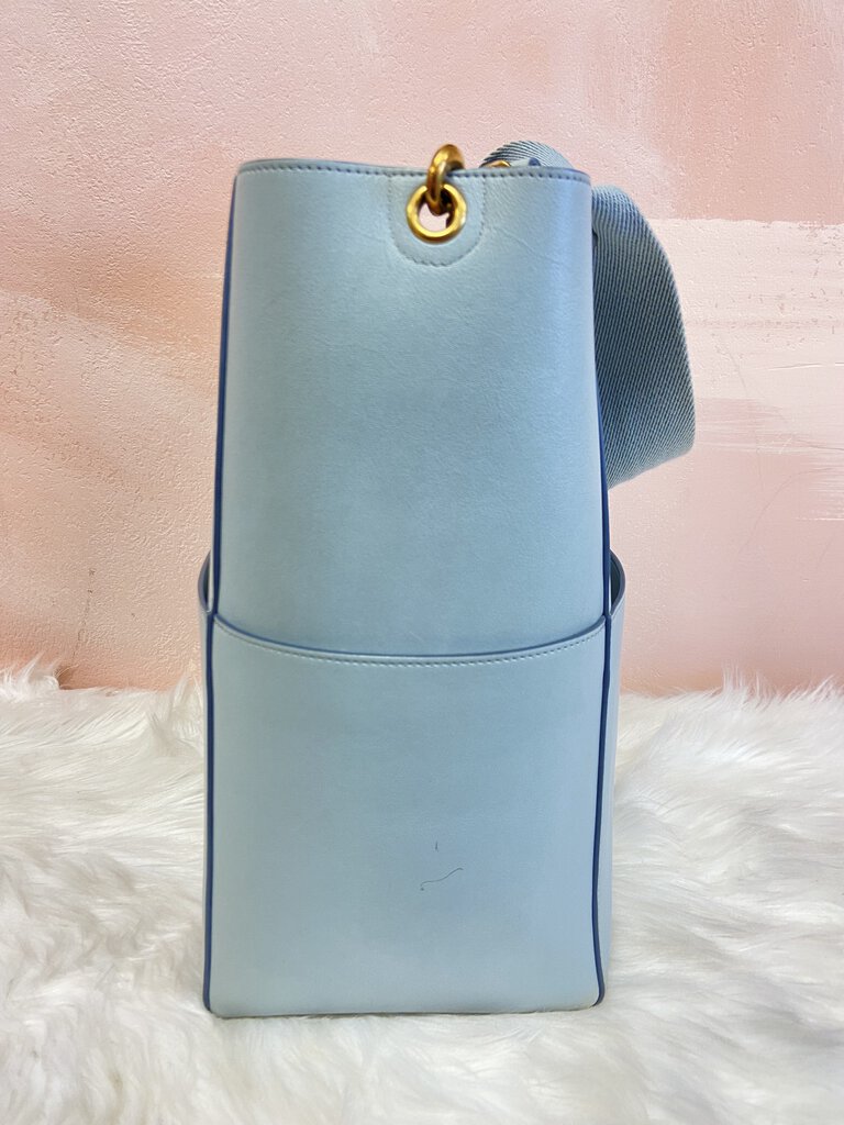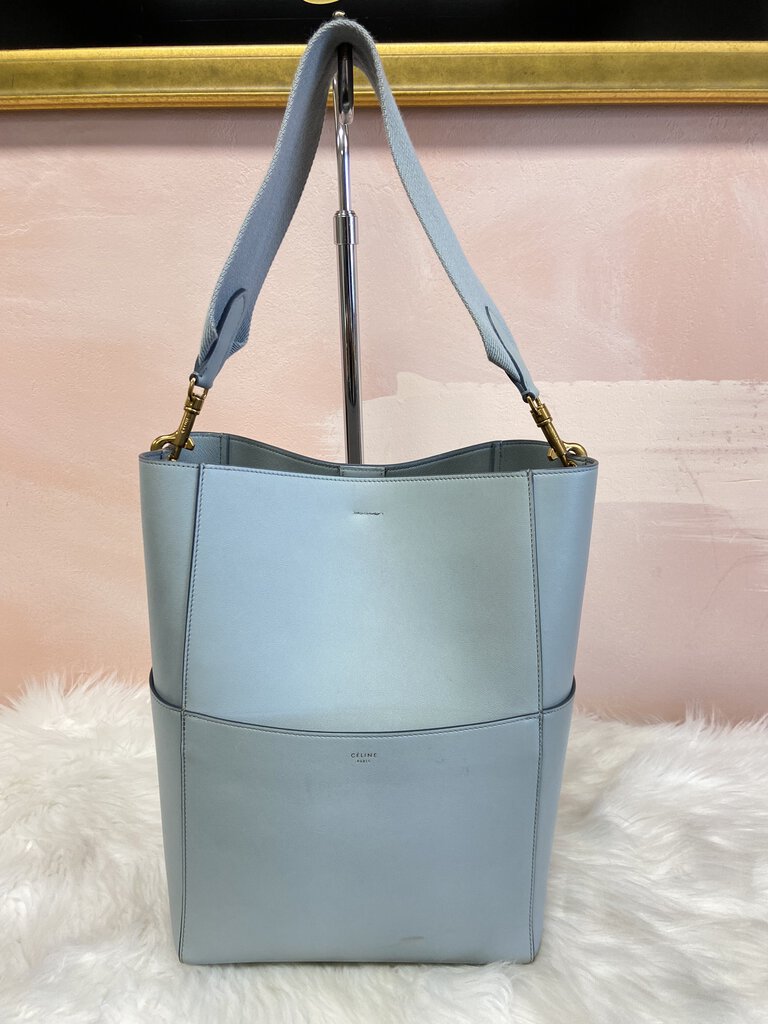 Celine Light Blue Leather Seau Sangle Bucket Bag w/Dust Bag