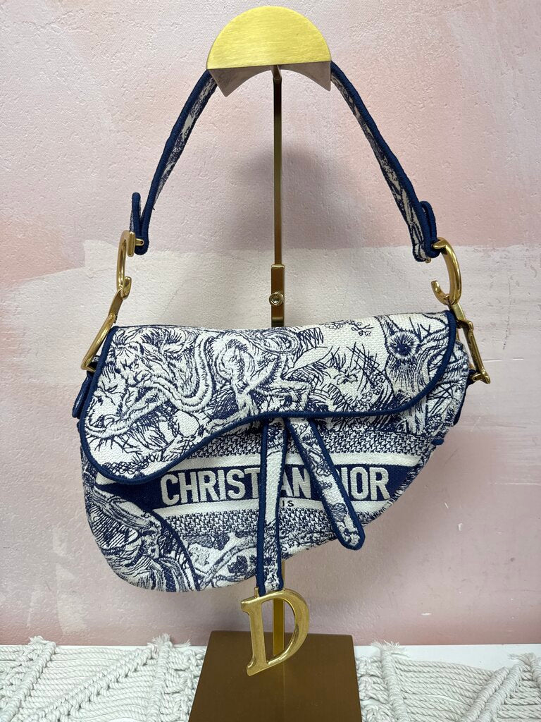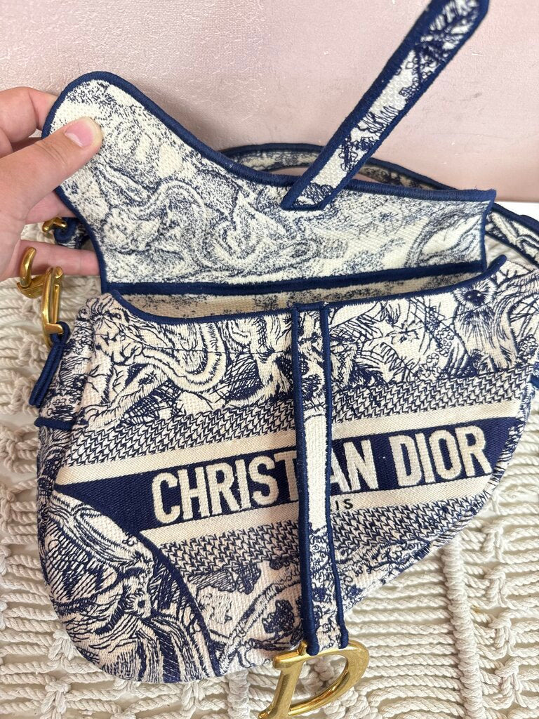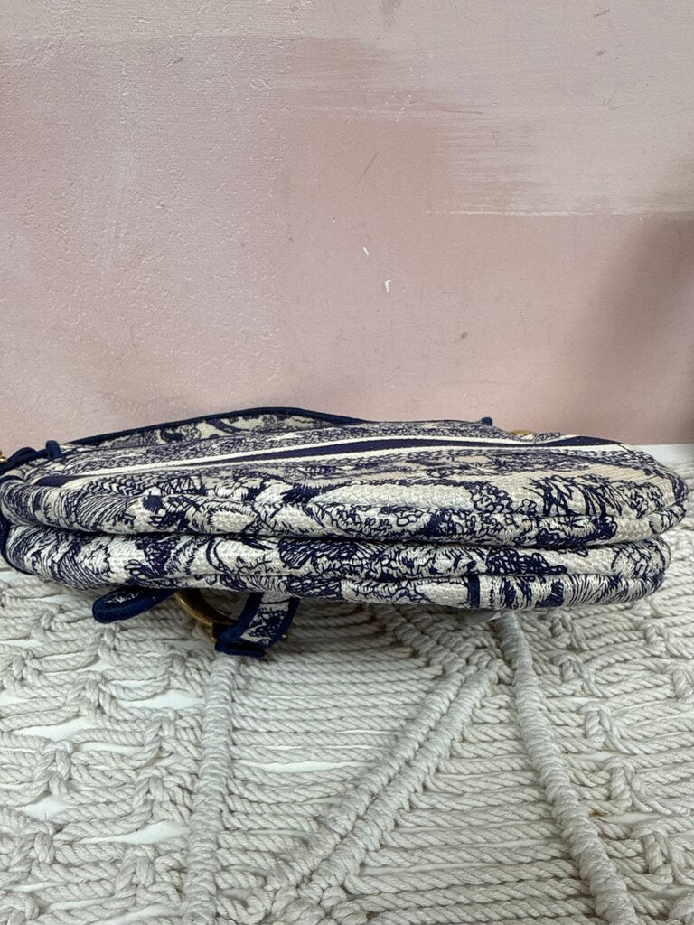 Dior Embroidered Saddle Toile De Jouy Medium Shoudler Bag