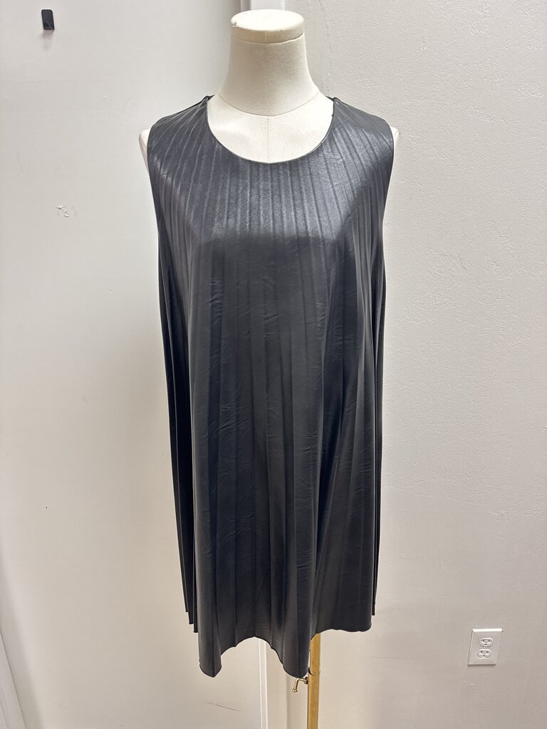 Lauren Vidal Blak Faux Leather Pleated Dress