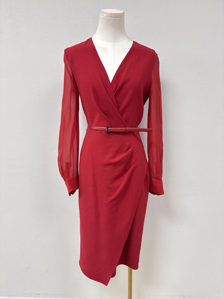 Max Mara Red Sheer Sleeve Belted Dress