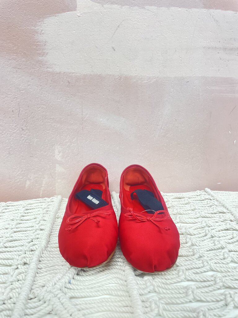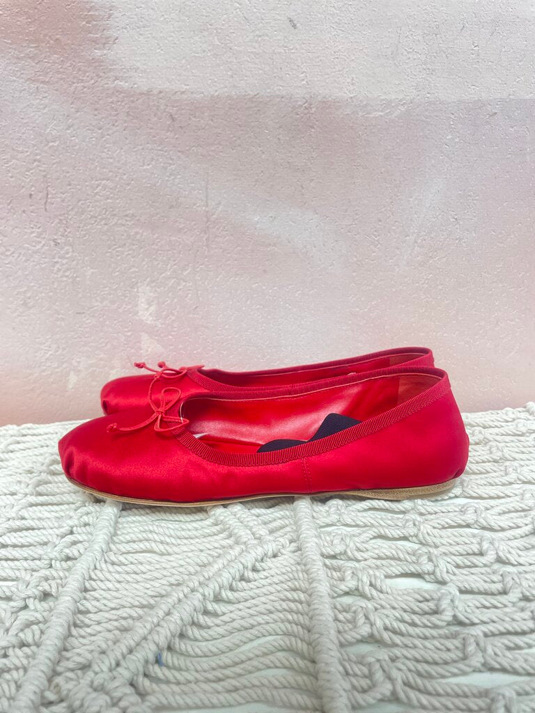 Miu Miu Red Satin Pointe Ballerina Shoe (Orig $1020)
