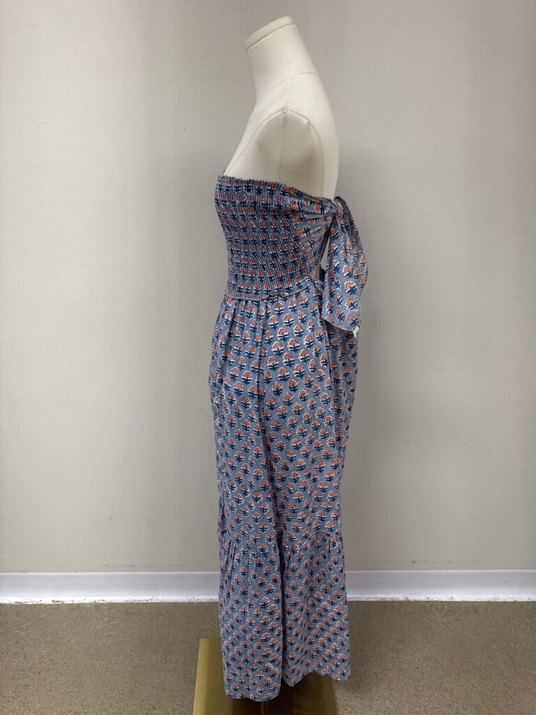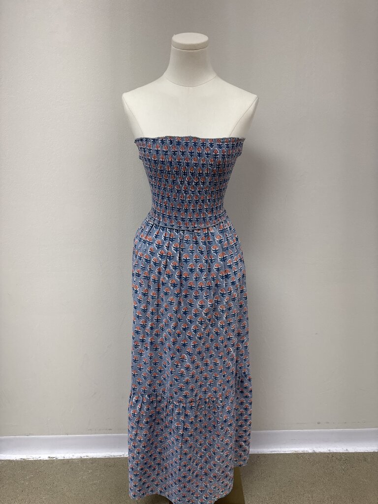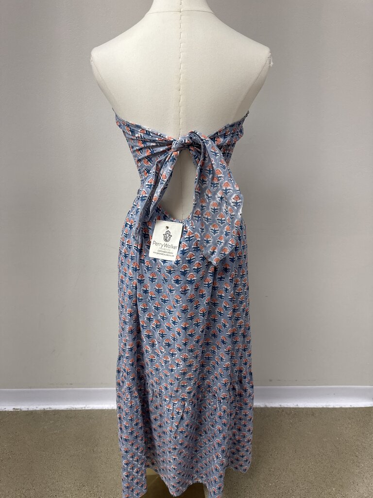 Perry Walker Slate Blue Printed Strapless Hankerchief Dress