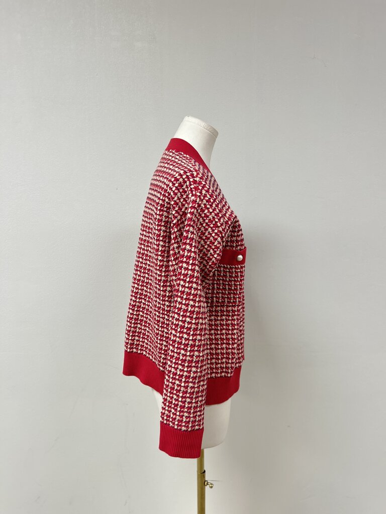Sandro Red Houndstooth Cardigan