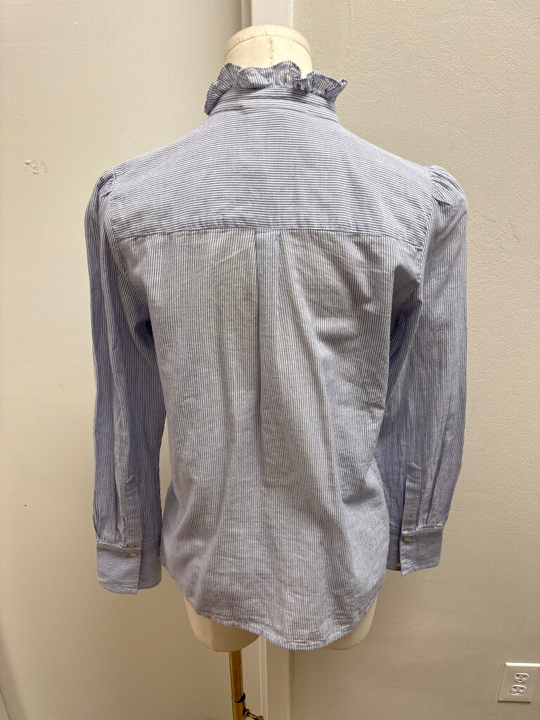 Vanessa Bruno Blue Striped Ruffle Front Top